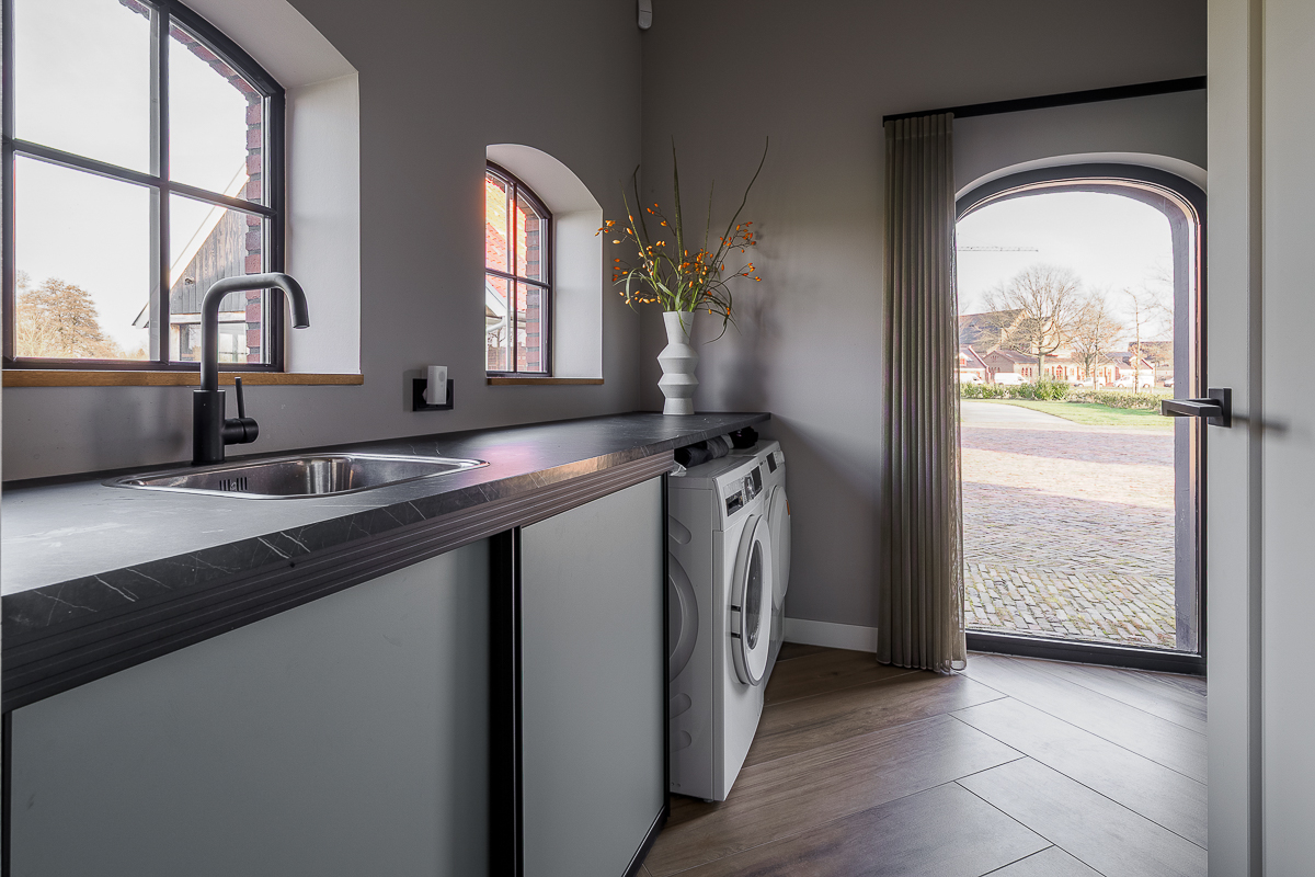 - bijkeuken annex technische ruimte met aanrechtblok en aansluitingen wasmachine/droger