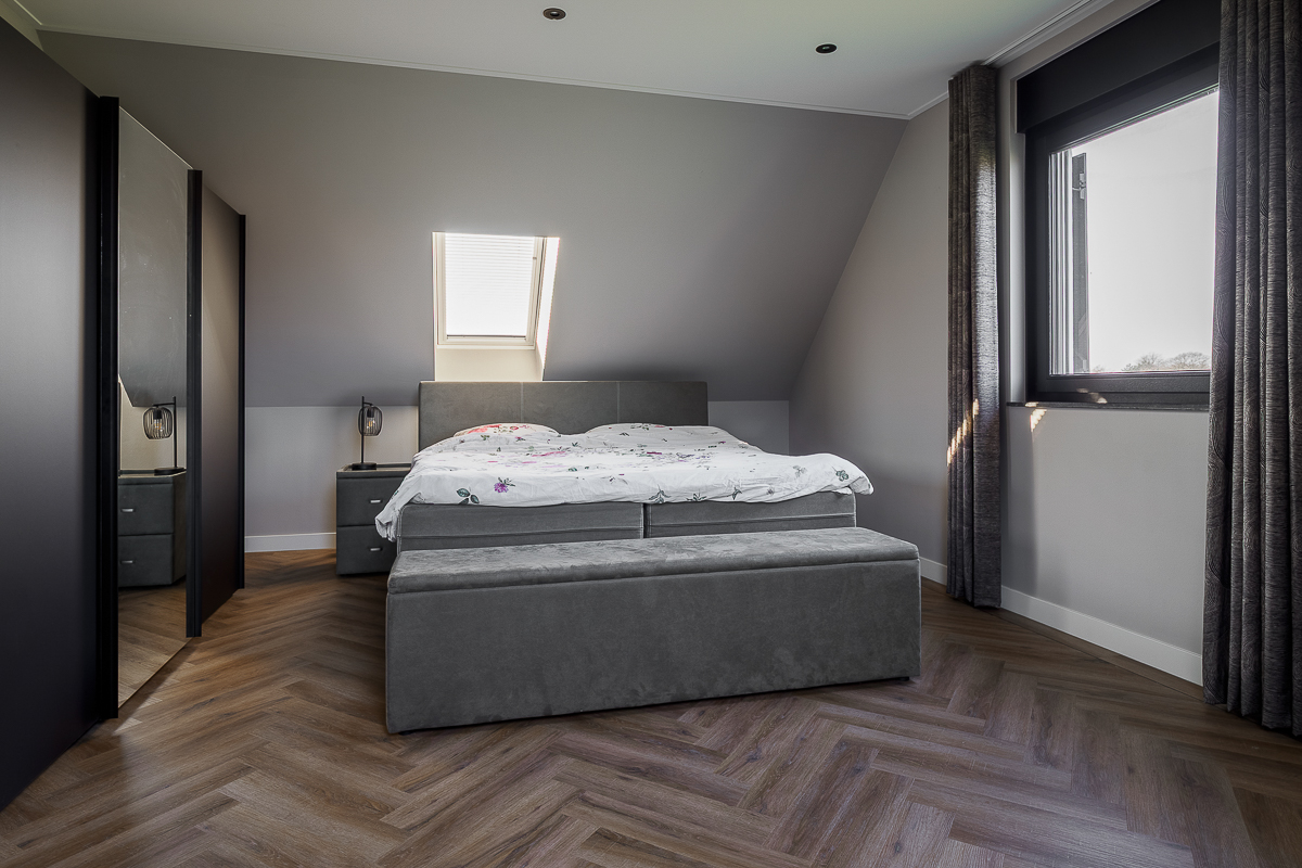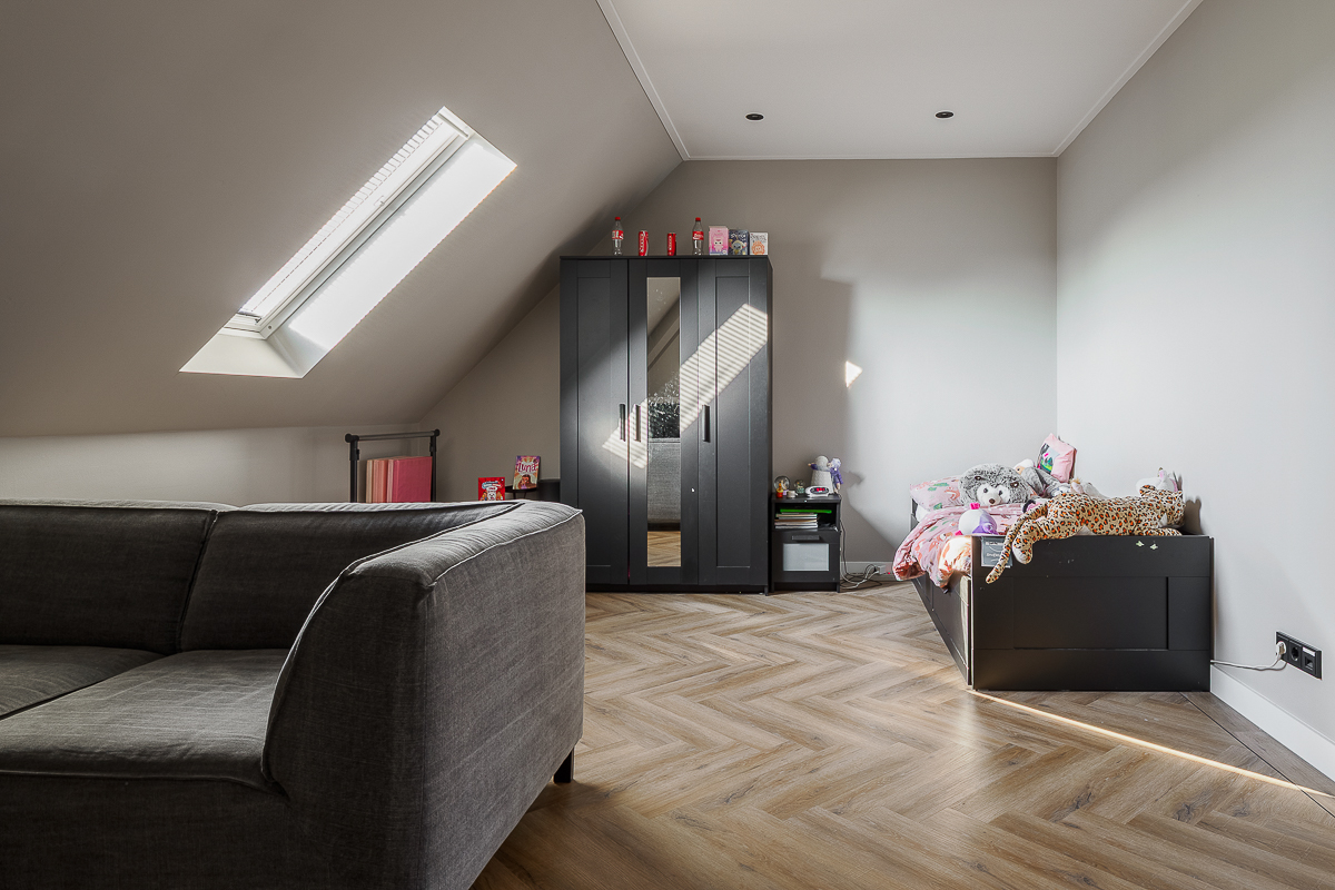 - de verdieping heeft automatisch sluitende dakramen met regensensoren en op afstand bedienbare rolluiken