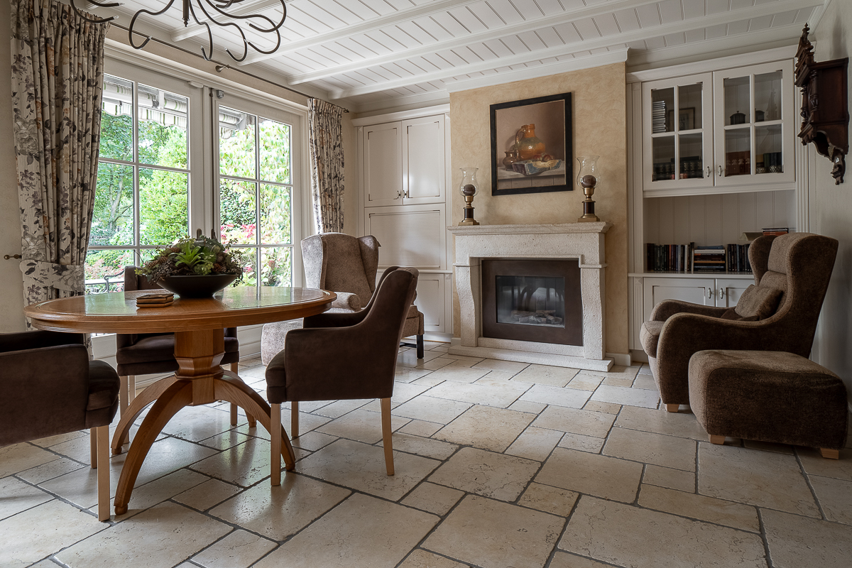 • Dakbedekking: Het landhuis is voorzien van een met keramische pannen gedekt dak.